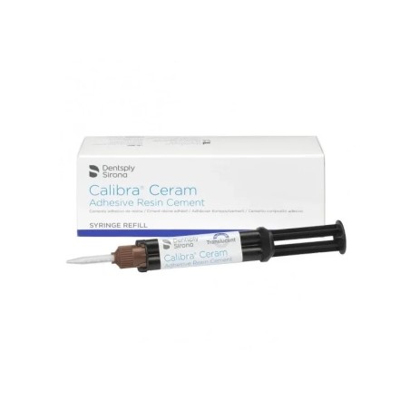 - Calibra Ceram е окончателен смолист цимент с двойна полимеризация (фотополимеризация и автополимеризация), предназначен за трайно фиксиране на естетични възстановявания от всички видове керамика, включително CAD/CAM конструкции.