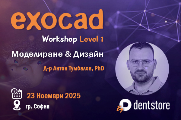 Featured Featured 23 ноември 9:00 am - 6:00 pm Моделиране и Дизайн с Exocad | Workshop Level 1 гр. София Д-р Антон Тумбалов Налични места: 1 550 лв. (281.21 €) Регистрирайте се Сега