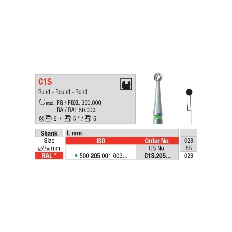 Фрези TC Burs RAL с кръгла глава C1S - За прецизна подготовка