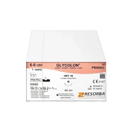 Конец PGA Glycolon 5/0 DSM16 с игла 16mm, ⅜ дъга, триъгълно сечение 45cm Resorba