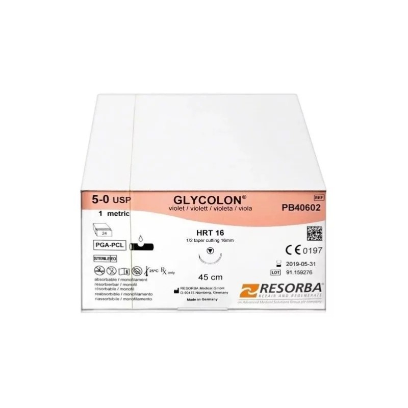 - Конец за шев PGA Glycolon 5/0 DSM16 с игла 16 mm, ⅜ дъга, триъгълно сечение – 1 брой