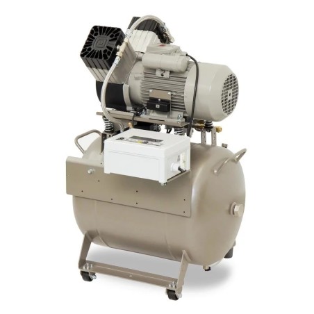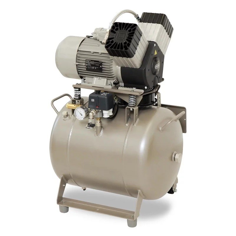 DK50 2V/50S – безмаслен компресор с два цилиндъра и шумоизолиращ кожух.