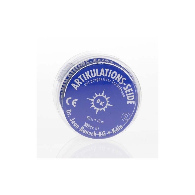 Bausch Articulating Silk 80µ е изработена от висококачествена естествена коприна, притежаваща същите свойства като 200 микрона артикулационна хартия с прогресивен цветен трансфер.