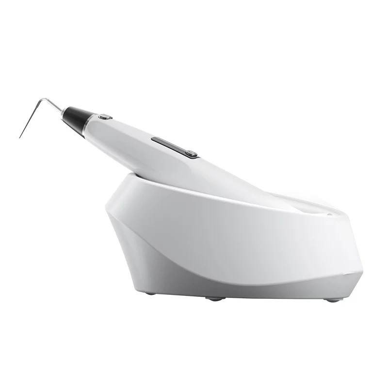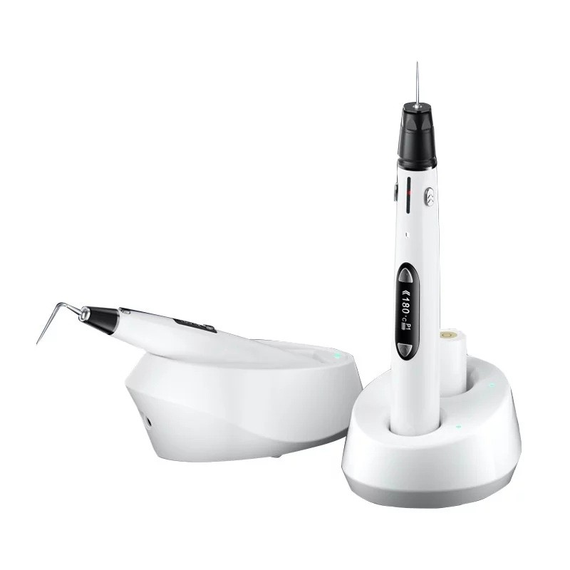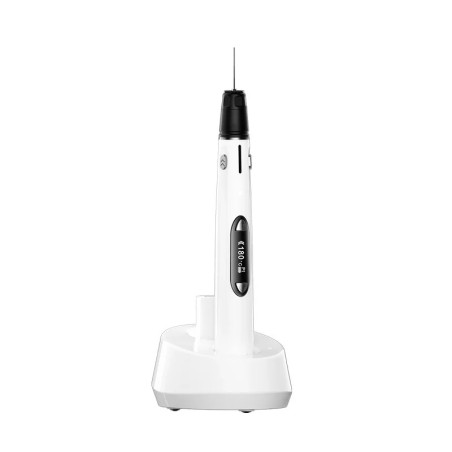 Предимства: • Безжична и електрическа • Перфектна флуидност на гутaперката • Равномерно и гладко изкарване на гутaperка без мехурчета • По-лесна инжекция, намалява умората на ръката на оператора в сравнение с традиционната ръчна инжекция • Намалява хирургичните рискове, причинени от изтичане на гутaperка • Автоматично почистване на остатъците от гутaperка • Многократно използваща се инжекционна игла с ротация на 360° • Пръчката от гутaperка се зарежда директно в инжекционната игла • Остатъци от гутaperка не остават вътре в апарата, което го прави лесен за почистване • Пръчката от гутaperка може да бъде сменена лесно, без да се изчаква вътрешното охлаждане на апарата • Дизайн с два бутона – инжекционни бутони, разположени симетрично, чувствителни и удобни • Прецизен и интуитивен дисплей за нивото на гутaперката – индикаторен панел е фиксиран в предната част на апарата за ясно и точно показване на нивото • Компактни и леки ръчни инструменти, лесни за използване • Система за защита – автоматично изключване на нагряването при пауза и автоматично изключване на устройството • Зарядна база с мониторинг на температурата на батерията – базата за зареждане следи температурата на акумулатора, гарантирайки по-безопасно зареждане • Две батерии от 2000mAh – бърза смяна за 1 секунда • Двата акумулатора позволяват обтурация на около 100 коренови канала Предимства Fi-E: • Еднократна инжекционна игла, отговаряща на най-строгите изисквания за контрол на инфекциите • 5 предварително зададени температури: 100°C, 120°C, 150°C, 180°C, 200°C • 3 скорости на инжекция: бавна (slow), средна (medium) и бърза (fast) • Време за зареждане: около 2.5ч (3ч при първо зареждане) • Батерия: 2000mAh Предимства Fi-P: • Време за нагряване: 0.2s – високопроизводителна система за преобразуване позволява ефективно рязане • Гъвкав връх 0.35mm – тънкият връх може да проникне дълбоко в тесния коренов канал, осигурявайки по-добро лечение • Високопрецизен контрол на температурата – постоянната температура намалява риска от изгаряне • 4 работни температури: 150°C, 180°C, 200°C, 280°C (подходящи за различни марки гутaperка на пазара) • Големият капацитет на батерията и специалната нагревателна система позволяват извършването на 1500 операции с едно пълно зареждане Технически данни на ръчния инструмент: • Диаметър: 26mm • Дължина: 200mm • Тегло: 148g • Капацитет на батерията: 2000mAh • Време за зареждане: 2.5ч • Тегло на зарядната база: 179g • Размери на зарядната база: 90mm x 115mm x 56mm • Тегло на захранващия адаптер: 167g • Захранване на базата за зареждане: AC100V-240V, 50/60Hz, 800mA • Изходна мощност: DC15V, 1.6A Условия за работа: • Температура: +5°C ~ +40°C • Влажност: 30% ~ 75% • Атмосферно налягане: 70kPa ~ 106kPa Условия за съхранение: • Температура: -20°C ~ +55°C • Относителна влажност: 10% ~ 93% • Атмосферно налягане: 70kPa ~ 106kPa Съдържание: • 1 ръчен инструмент • 1 зарядна база • 1 захранващ адаптер с кабел • Инжекционни игли за гутaперка;; • 1 топлинна защитна капачка • 1 защита за инжекционната игла • 1 ключ Описание: