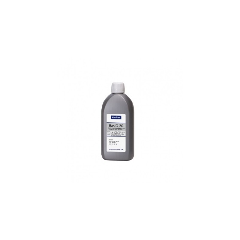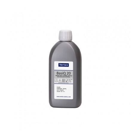 Vertex BasiQ 20 е топлополимеризираща пластмаса за тотални и частични протези с бърз полимеризационен цикъл (20мин.) Опаковка 250 мл