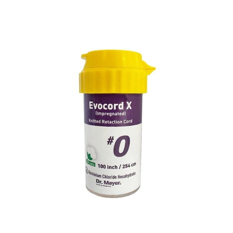 Evocord X – ретрaкционна корда, изработена от 100% памук, импрегнирана с алуминиев хлорид хексахидрат 1,2 ± 0,8 mg на инч корда